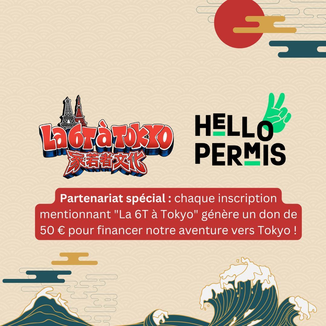 l'auto-école verse 50 € pour financer notre voyage vers le Japon.